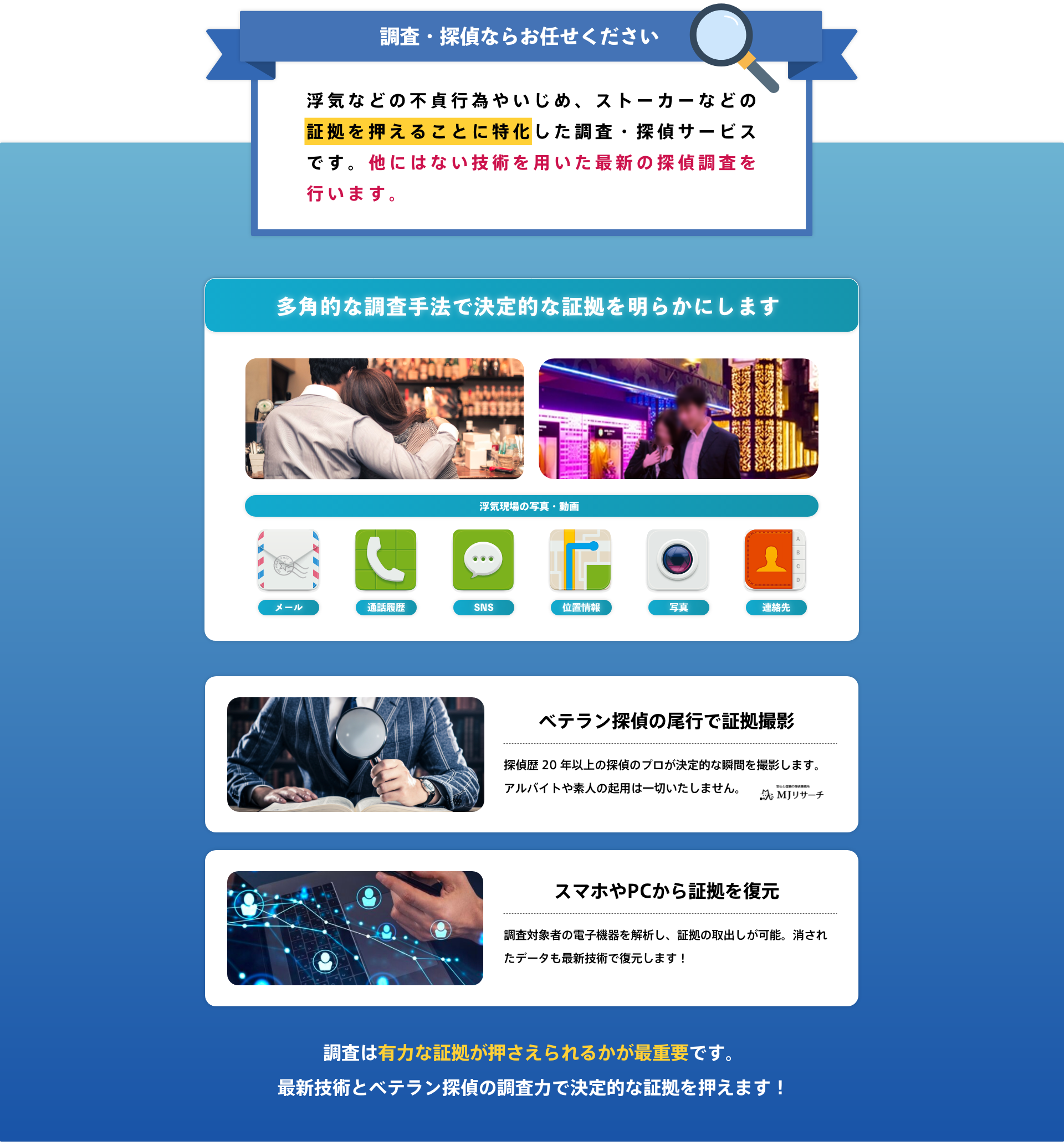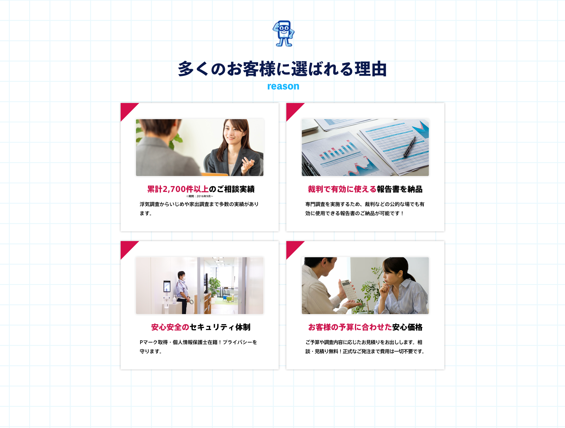 もちろん可能です。人には言えない相談を受けるのが私たちの仕事です。探偵業法によって探偵の守秘義務・秘密保持義務が定められておりますのでご安心ください。