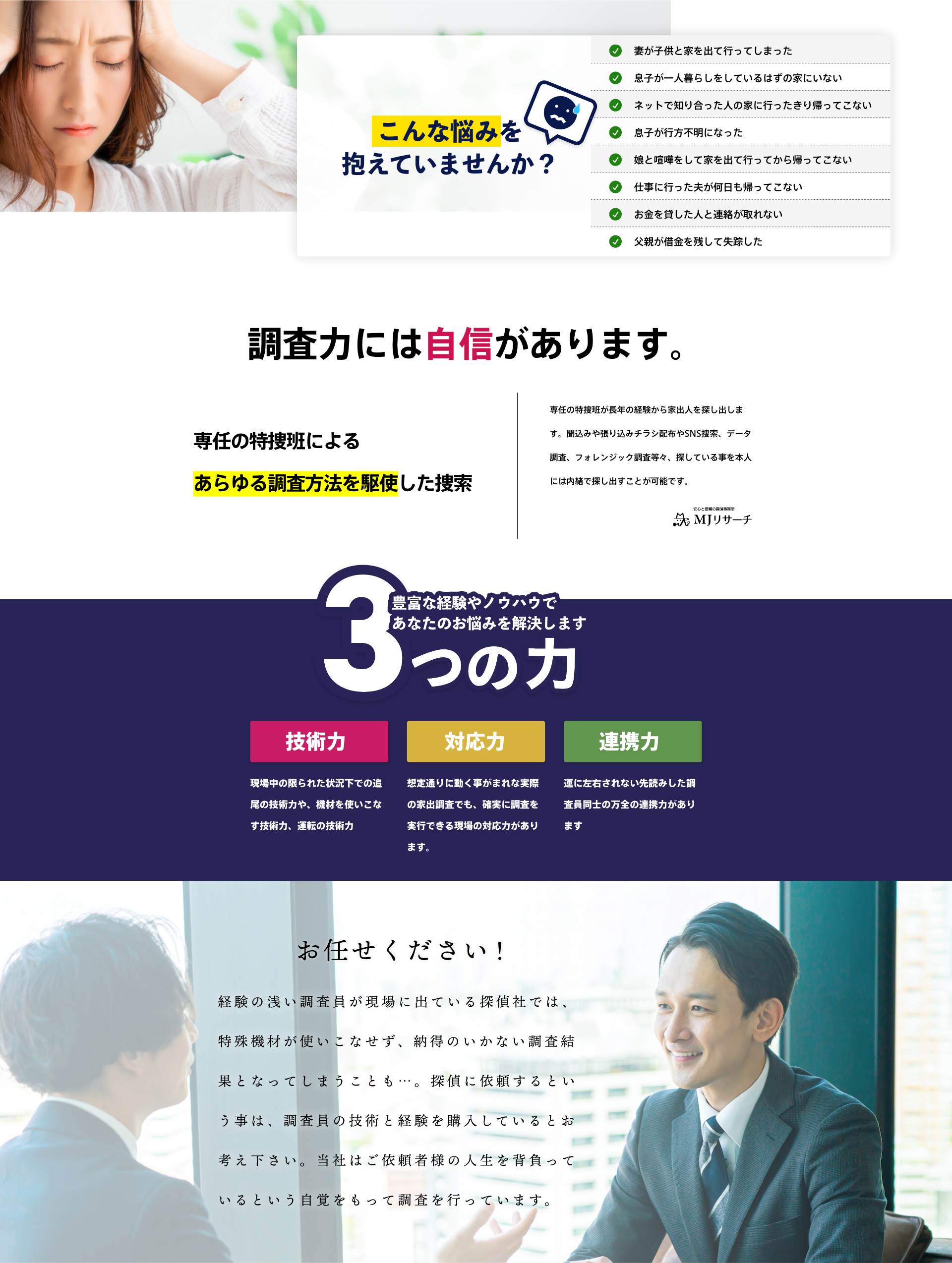 もちろん可能です。人には言えない相談を受けるのが私たちの仕事です。探偵業法によって探偵の守秘義務・秘密保持義務が定められておりますのでご安心ください。