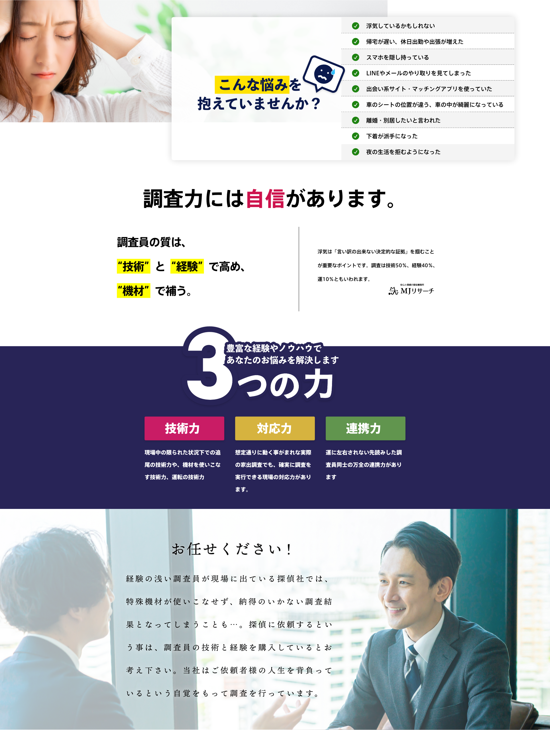 もちろん無料で行います。浮気調査といっても内容は千差万別、ご依頼者様が求める物(証拠)や調査の内容、などを伺ったうえで、見積もりをだします。